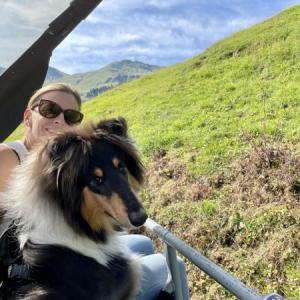 Nous sommes toujours en déplacement dans les montagnes avec nos Collies Freya et Gisa. Ici, nous sommes dans le Val Müstair, dans la belle Engadine :-) Nous serions très heureux de recevoir un fantastique set de randonnée pour nos longues randonnées en Engadine !