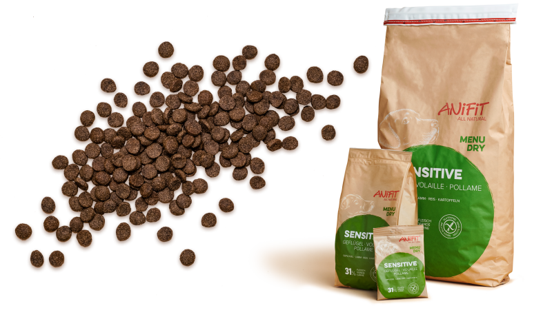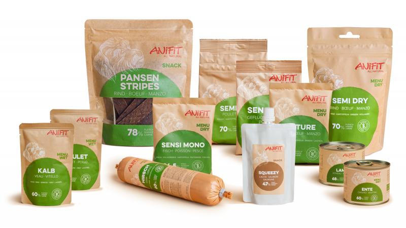 Qu'il s'agisse d'aliments humides ou secs, d'aliments complémentaires ou de délicieuses friandises, chez ANiFiT vous trouvez exclusivement de la nourriture pour chiens saine et naturelle, dans différents goûts et naturellement sans aucun additif, exhausteur de goût ou agents conservateurs.